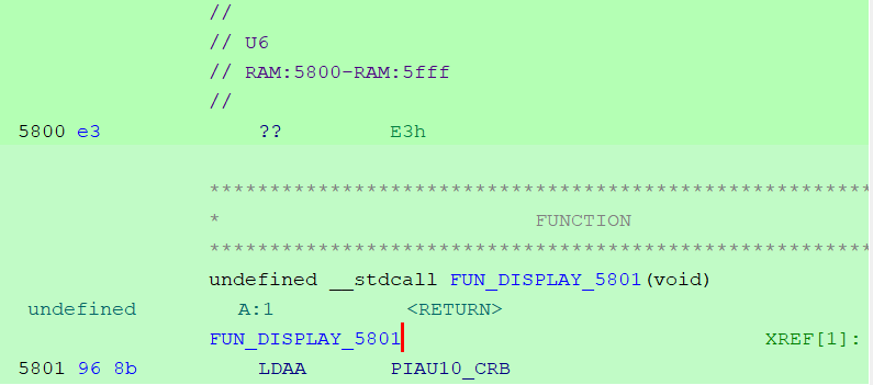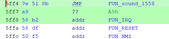 In de snippet hiernaast zie je op 5800 en 5ff7 codes staan die niet te disassembleren zijn. De aanname is dat deze twee addressen dan ook de checksum alignment bytes zijn.