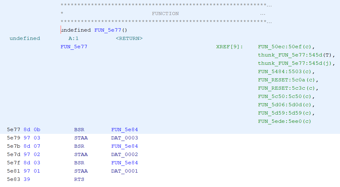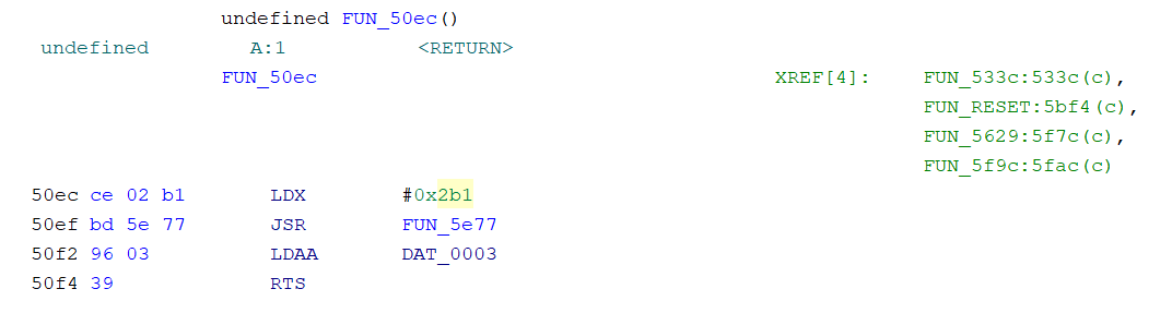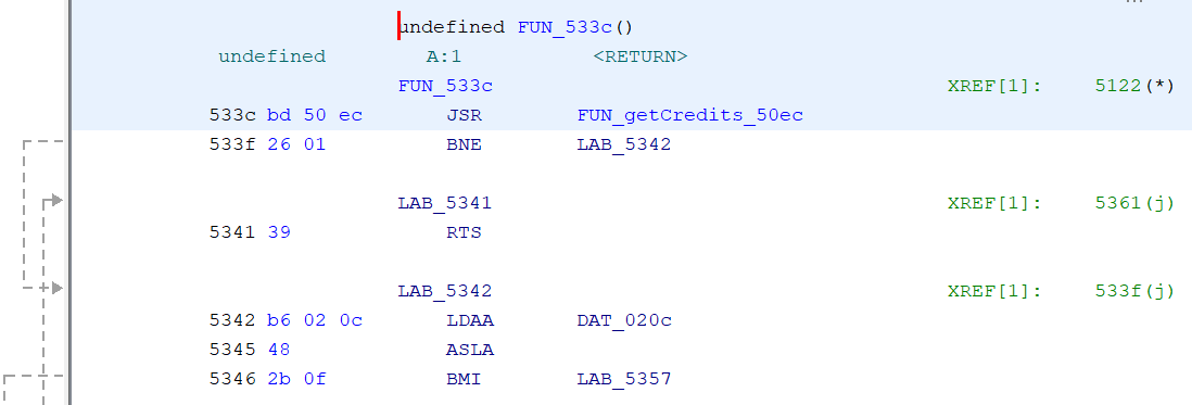 50ec, FUN_get_3xBCD2_to_DAT_3_2_1_5e77(0x2b1) een zet DAT_0003 in A. Voorlopig hernoem ik de FUN_50ec naar FUN_getCredits_50ec Hier is ook de referentie interessant, wie roept dit aan? De credits waarde wordt getest of het niet nul is. De referentie 5122(*) is een tabel. (switches?)