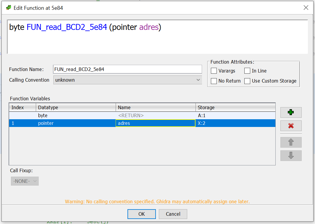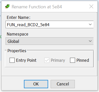 Deze functie lijkt dus de BCD waarde te lezen voor 2 adressen. Laten we de functie een handigere naam geven. Ik vind het persoonlijk handig om het adres in de funtie te laten staan.